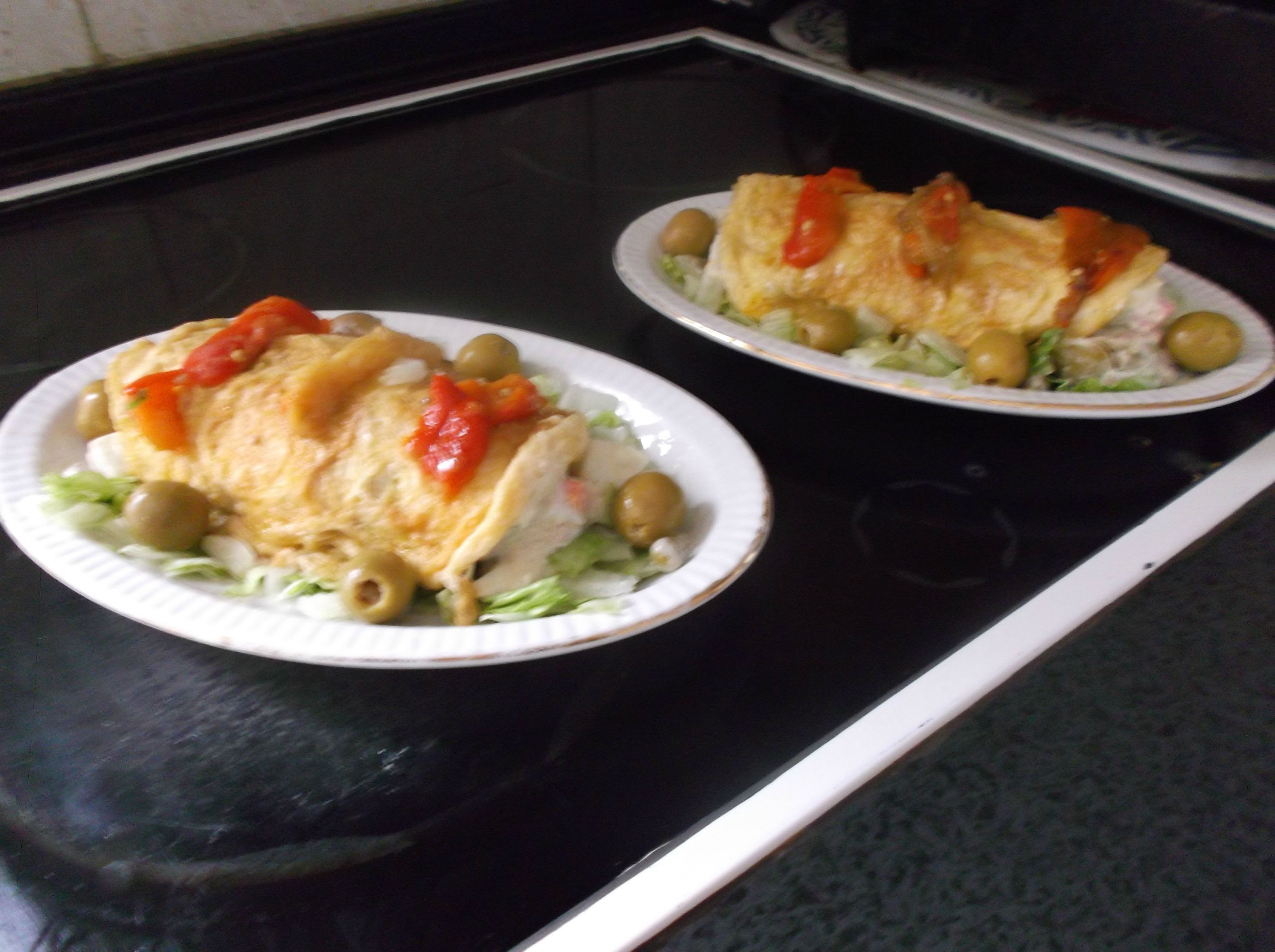 tortillas francesas de 1 huevo cada una, sazonándolas.